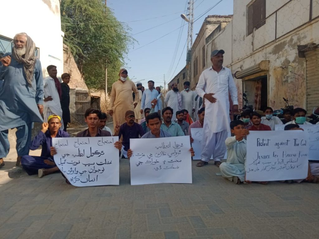 .ھريش ڪمار جي وارثن، سياسي سماجي اڳواڻن ۽ نوجوانن احتجاجي مظاهرو ڪندي