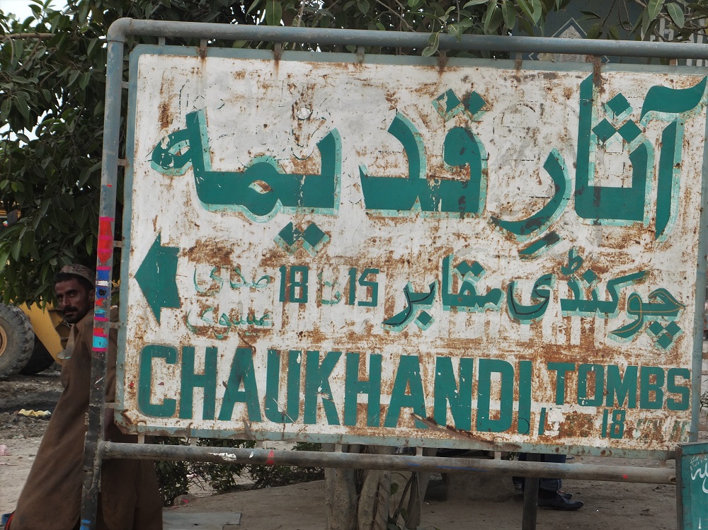 اسان آخرڪار نيشنل هاءِ وي چوڪنڊي قبرستان جي گهٽي اندر داخل ٿياسين جتي وڏيون ٽرڪ، گهٽي جا ڳتيل هئي پر اتي چوڪنڊي قبرستان جو سائن بورڊ لڳل هو جنهن جي حالت خراب هئي ۽ پوري طرح سان تاريخي ورثي جو ڏيک ڏيندڙ هو خير اتي ڪجهه سياستدانن جون تصويرون پڻ لڳل هيون جيڪو بهتر حالت ۾ نظر آيون