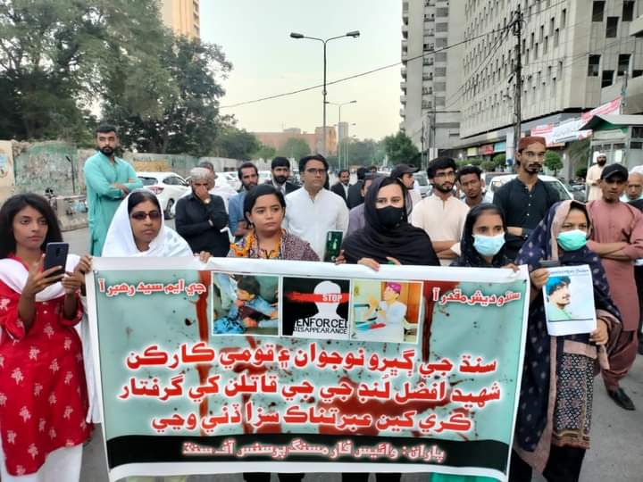 هنن وڌيڪ چيو ته افضل لُنڊ جنھن کي ايجنسين پھرين کنڀي گم ڪري مٿس سخت تشدد ڪيو ويو ۽ پوءِ جدوجھد جي نتيجي ۾ کيس ظاھر ڪري مٿس ڪوڙا ڪيس مڙھيا ويا پر عدالتن ان کي باعزت بري ڪري ڇڏيو، ھاڻي ھو شھدادپور ۾ ھڪ مائيڪرو فائنانس بئنڪ ۾ ھڪ ملازم جي حيثيت سان ڪم ڪري رھيو ھو.